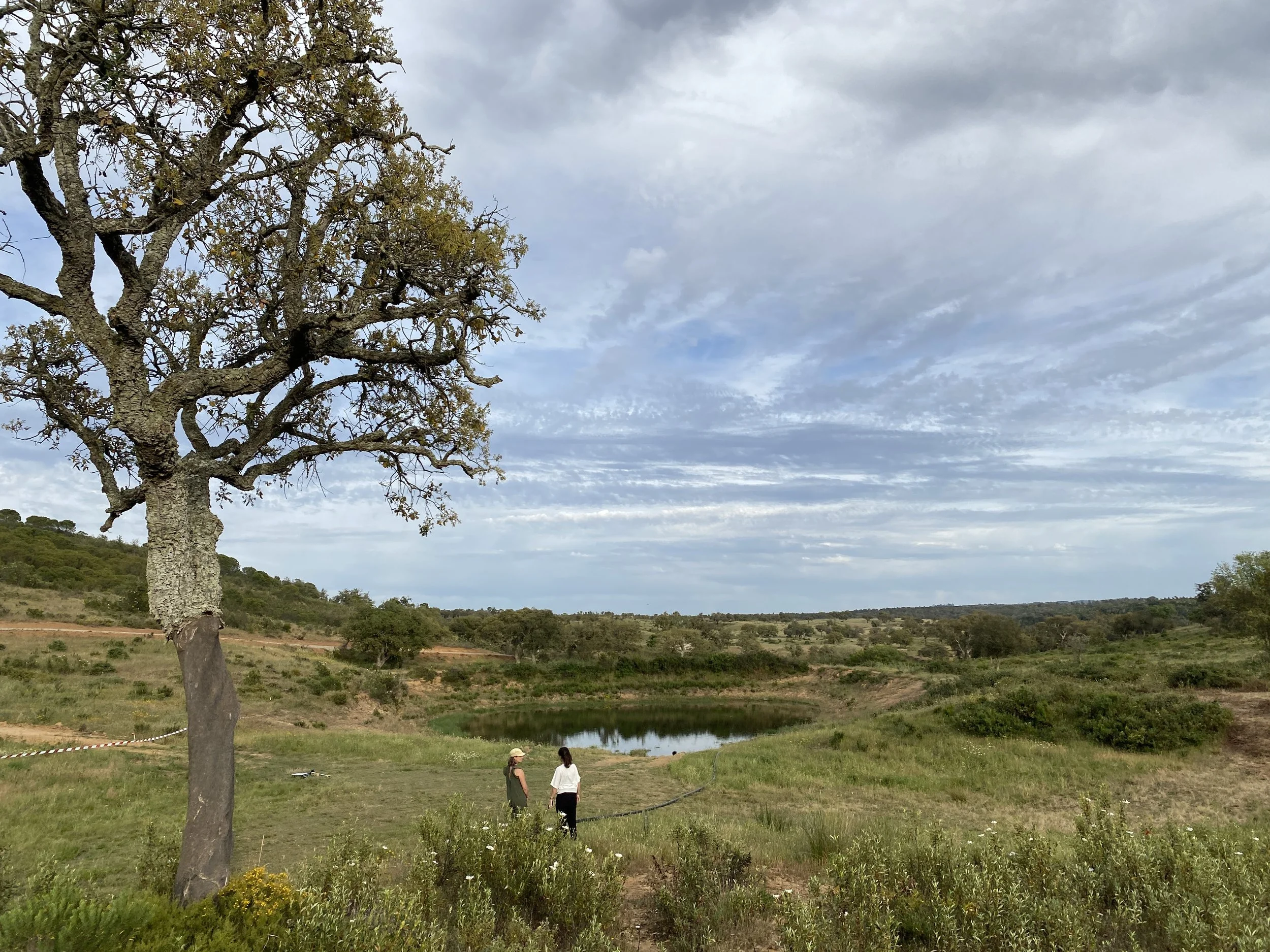 The site is set in a valley with an existing water collection basin, retained by an over-engineered artificial damn. Water at present is topped up naturally by surface water run-off. Design work is in process for the enlargement of this water feature with focus on water surface level stabilisation and adjustment of contours for water retainment. The existing vegetation is rather stunning; the first time we visited hundreds of green wing orchids (Anacamptis morio) greeted us. Sages mark, like a green ribbon, areas where water runs to from surrounding hills, making their way towards the lowlands.