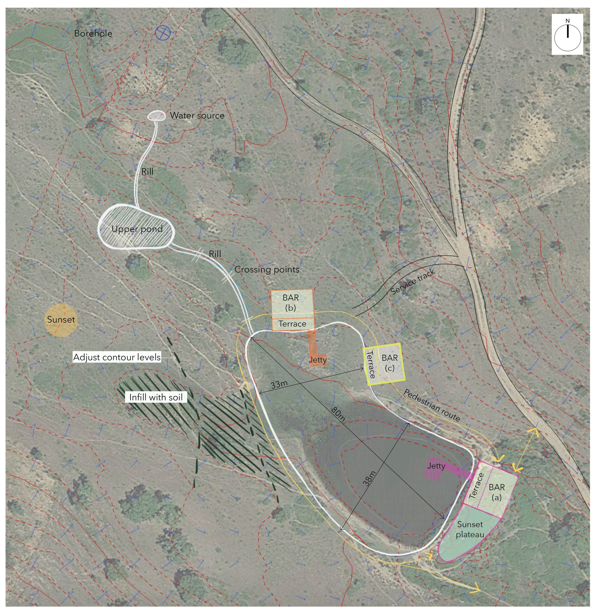Proposed levels with adjusted contours for water retention